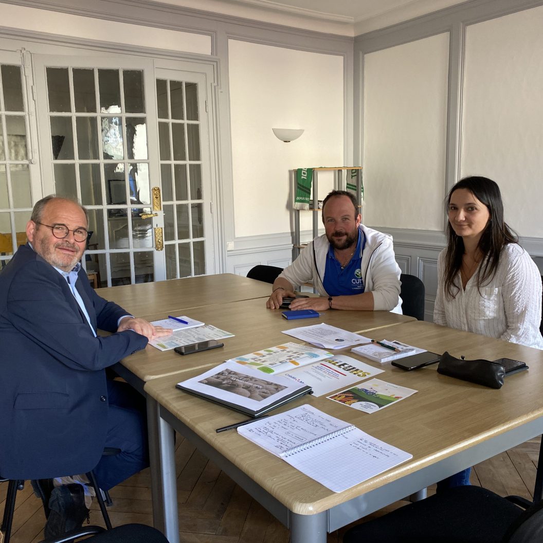 Bertrand ESCOT (président) et Clémence RAUZE (animatrice) ont rencontré jeudi 15 mai 2025 le sénateur ligérien Jean-Claude TISSOT ainsi que son attaché parlementaire Louis FOND, afin d'échanger sur le dispositif DiNA (Dispositif National d'Aide aux projets de CUMA), cible d'une coupe budgétaire non négligeable.