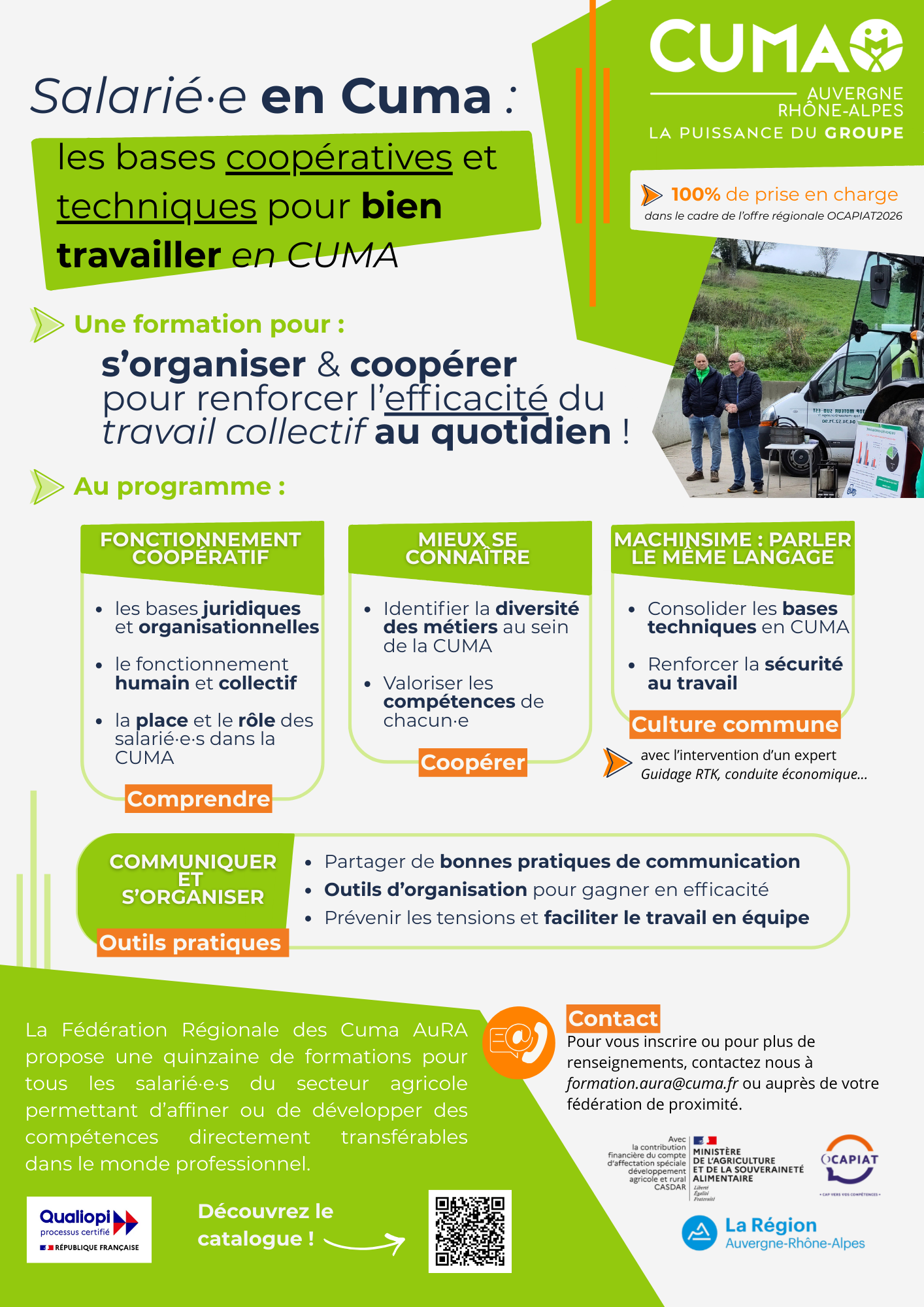 Une deuxième session aura lieu cet hiver 2026/2027. N’hésitez pas à nous contacter si vous souhaitez inscrire vos salariés de CUMA.